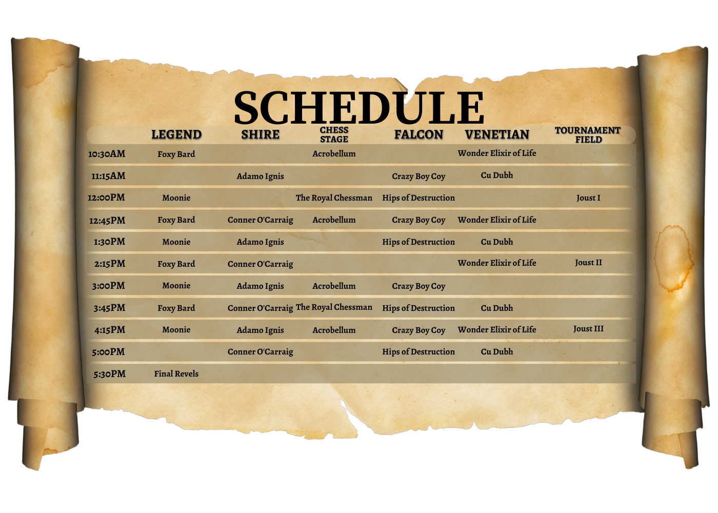 Come and step through the gates to feast on a hearty turkey leg, grab a drink, and perhaps even have the chance to rub elbows with our lively characters as they roam through the enthusiastic crowd. Enjoy the captivating entertainment and seize the opportunity for memorable photo moments with Knights and Wenches alike!